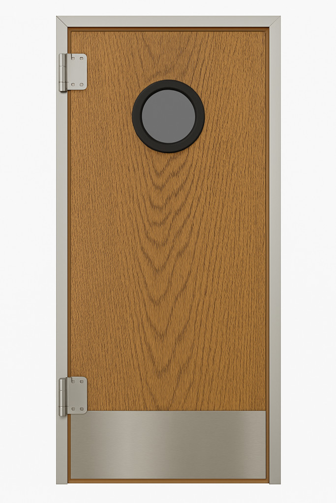 Az alap felszereltség mellett, lehetőség van az ajtólap rugdosó lemezzel való bővítésére, mely megóvja az ajtót az áthaladáskor bekövetkezhető sérülésektől, így akár lábbal vagy tároló kocsik áttolásával is lehetséges a nyítás. Rugdosólemezeink szálcsiszolt rozsdamentes lemezből készülnek.