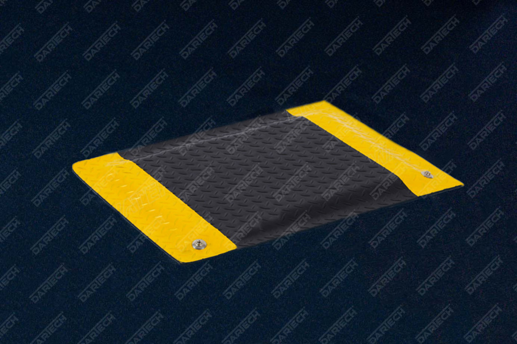 A csúszásmentes, gyémántmintás felület biztonságos munkavégzést tesz lehetővé, a sárga szegély pedig vizuálisan határolja le a munkaterületet. Nagyméretű munkapadokhoz vagy állomásokhoz ajánlott, ahol a munkavégzés kényelme és biztonsága elsődleges szempont.