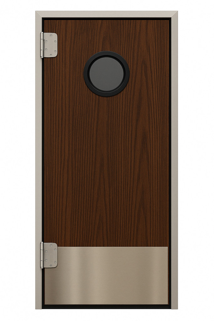 Az alap felszereltség mellett, lehetőség van az ajtólap rugdosó lemezzel való bővítésére, mely megóvja az ajtót az áthaladáskor bekövetkezhető sérülésektől, így akár lábbal vagy tároló kocsik áttolásával is lehetséges a nyítás. Rugdosólemezeink szálcsiszolt rozsdamentes lemezből készülnek.