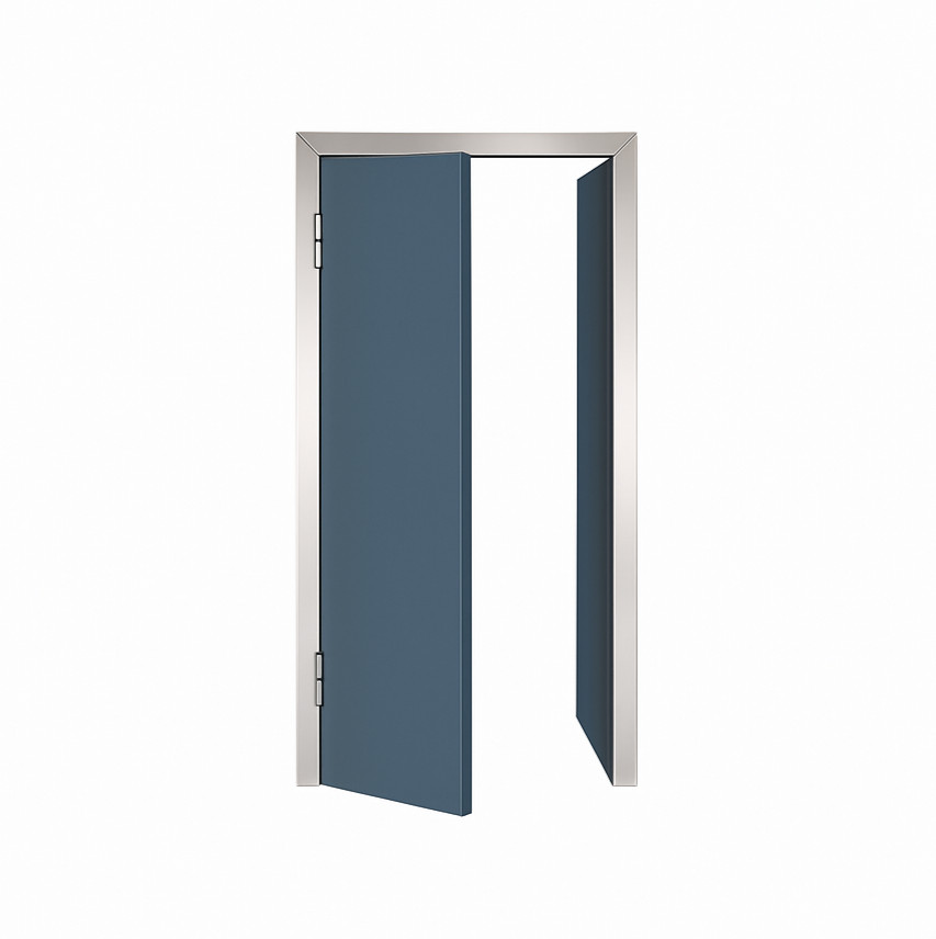 Az ajtólap két oldalt fehér színű stadurlapból áll, szélein alumínium keretprofillal, mely lehetővé teszi az oldalsó gumitömítés elhelyezését a megfelelő záródás érdekében. A zsanérok lehetővé teszik az ajtó mindkét irányból történő nyitását, és 90º -ban történő kitámasztását, ezzel könnyítve az átjárhatóságot. A műanyag borítású acél rugós zsanérok alkalmasak élelmiszeripari használatra is. Az ajtó az áthaladás után visszazáródik mindenféle kézmozdulat nélkül.