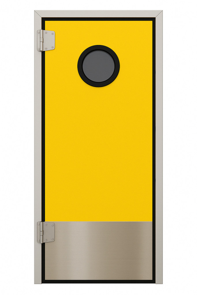 Az alap felszereltség mellett, lehetőség van az ajtólap rugdosó lemezzel való bővítésére, mely megóvja az ajtót az áthaladáskor bekövetkezhető sérülésektől, így akár lábbal vagy tároló kocsik áttolásával is lehetséges a nyítás. Rugdosólemezeink szálcsiszolt rozsdamentes lemezből készülnek.