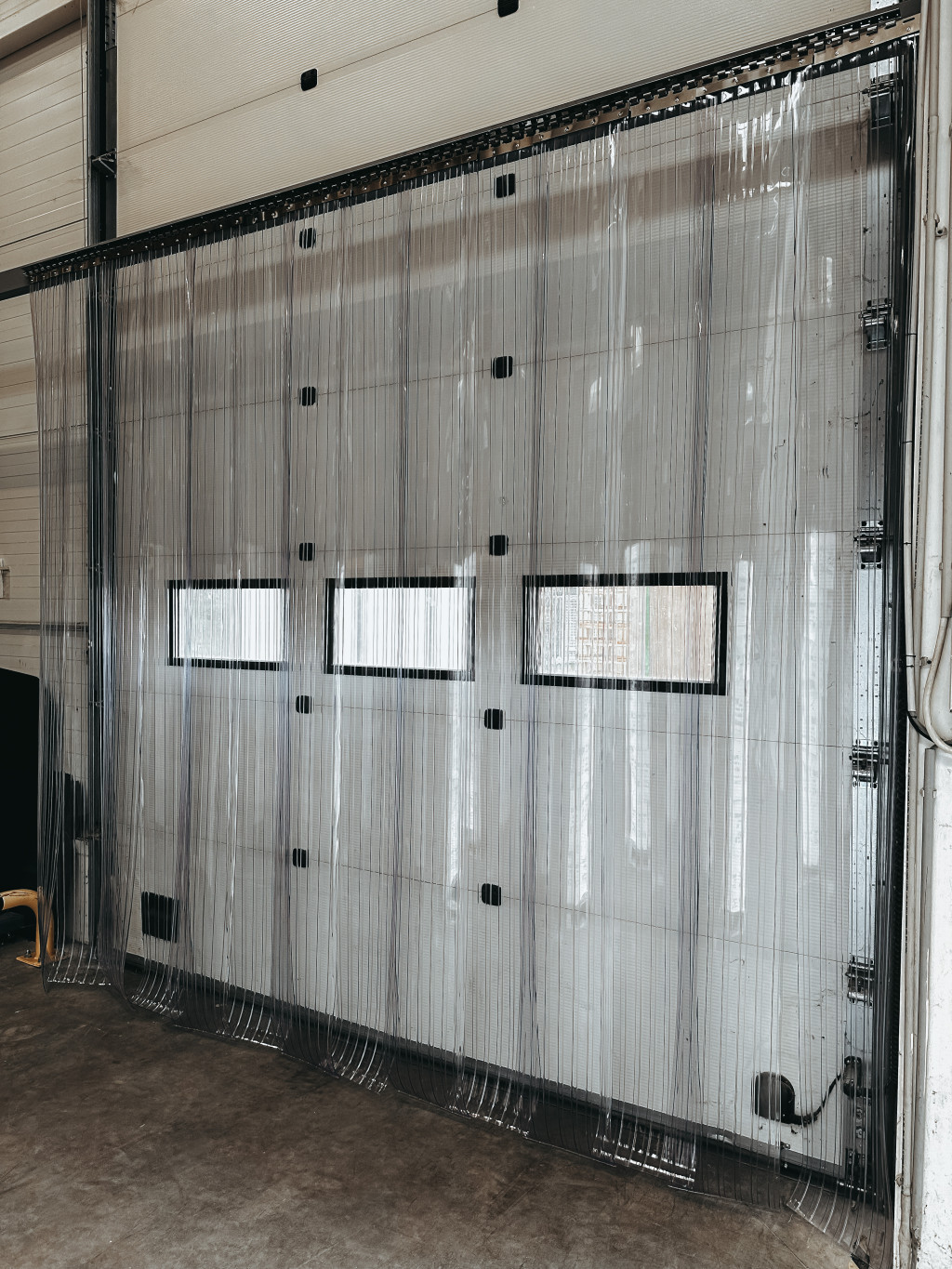 Ajánlott alkalmazás: A fagyálló bordázott PVC hőfüggöny 3510 × 3550 mm kifejezetten olyan ipari területekre ideális, ahol intenzív targoncaforgalom mellett szükséges a hűtött vagy fagyasztott terek hőszigetelése.
