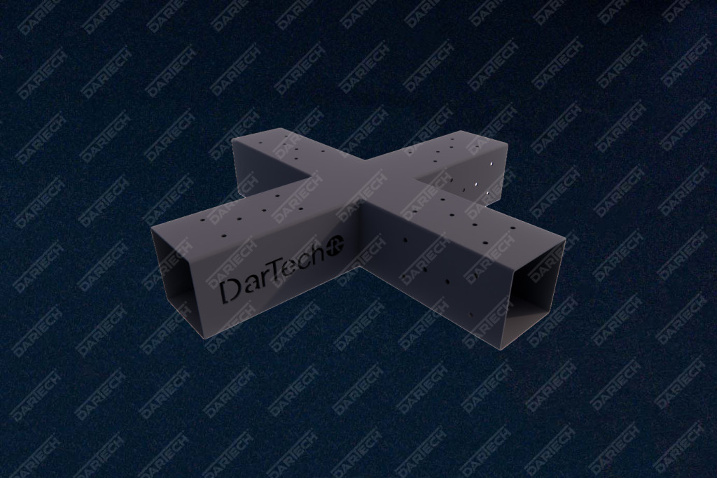 Az elemek 2 mm vastagságú acéllemezből készülnek, amelyet fekete porfestett bevonattal láttak el a maximális tartósság és korrózióvédelem érdekében. A csatlakozók belső mérete 94 × 94 mm, így ideális 100 × 100 mm-es (10 × 10 cm-es) gerendákhoz, figyelembe véve a gyalulás utáni méretcsökkenést.